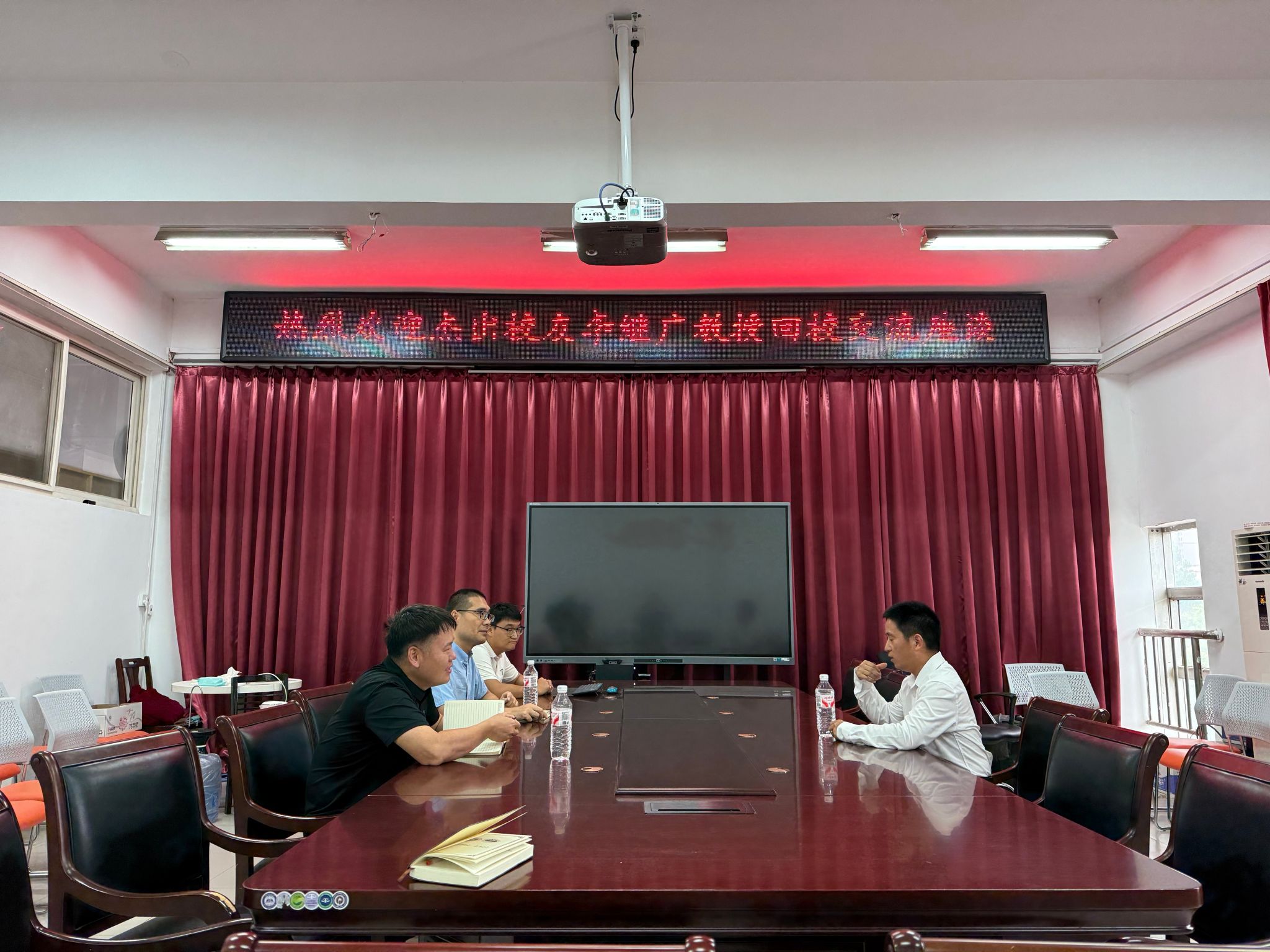 教授、陕西华兴通盛航空科技有限公司创始人李继广回校交流。党总支副书记刘自范、学术副院长王建军、办公室副主任张坤及教师代表李晨辉参加了交流会。