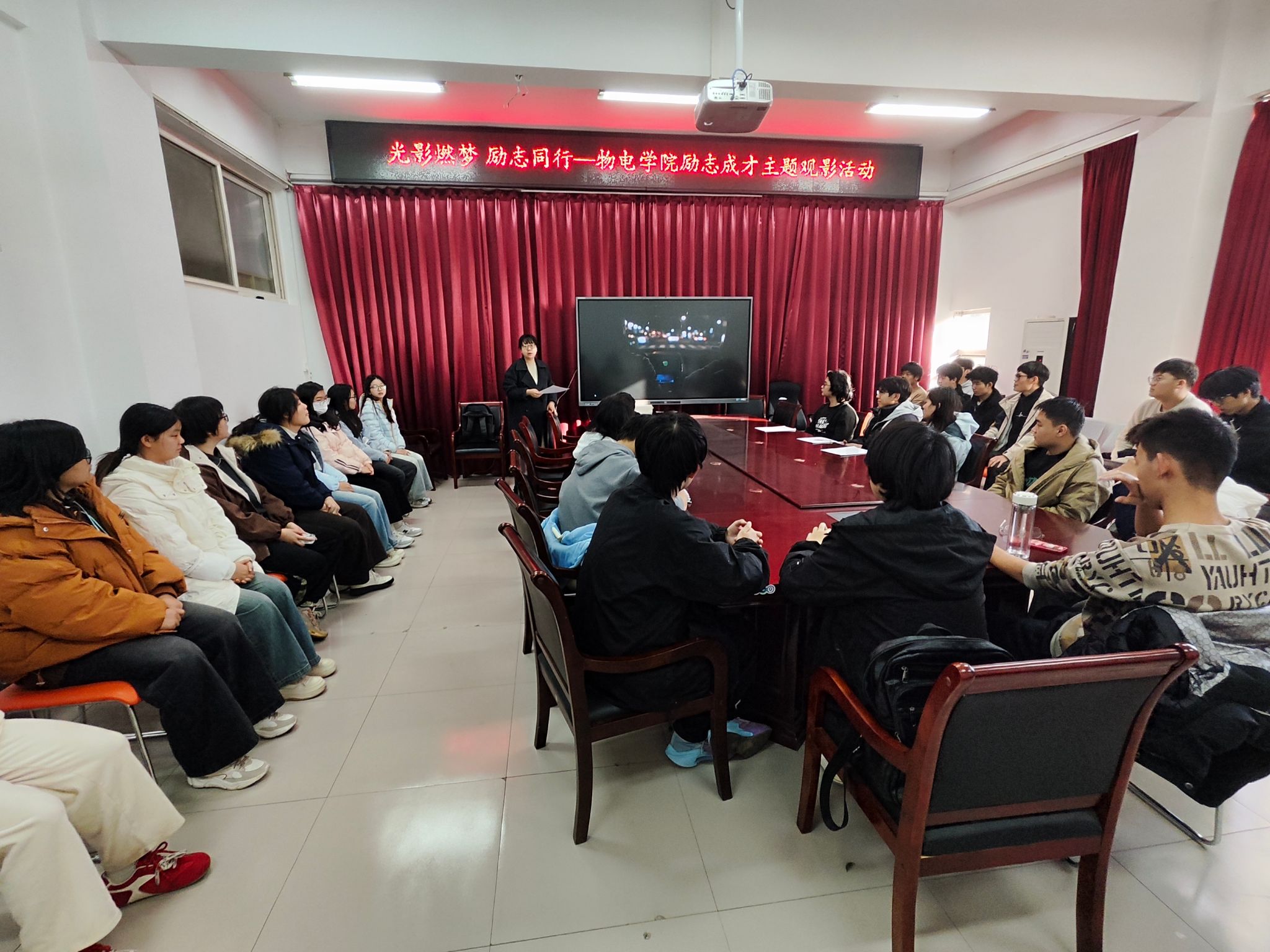 负责资助工作的马亚琼老师简要介绍了本次活动的主旨,强调了资助政策“助困”更“育人”的双重目标,鼓励同学们在享受国家与社会关怀的同时,更要锤炼品格、奋发图强,将暂时的困难转化为前进的阶梯,未来以真才实学回馈社会。随后,同学们沉浸于影片跌宕起伏而又充满温情的情节之中,现场时而鸦雀无声,时而发出会心的笑声与轻声的感叹。